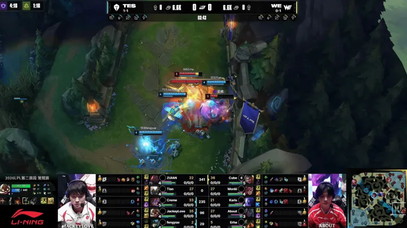 虎扑04月08日讯 【GAME1】TES蓝色方;WE红色方
